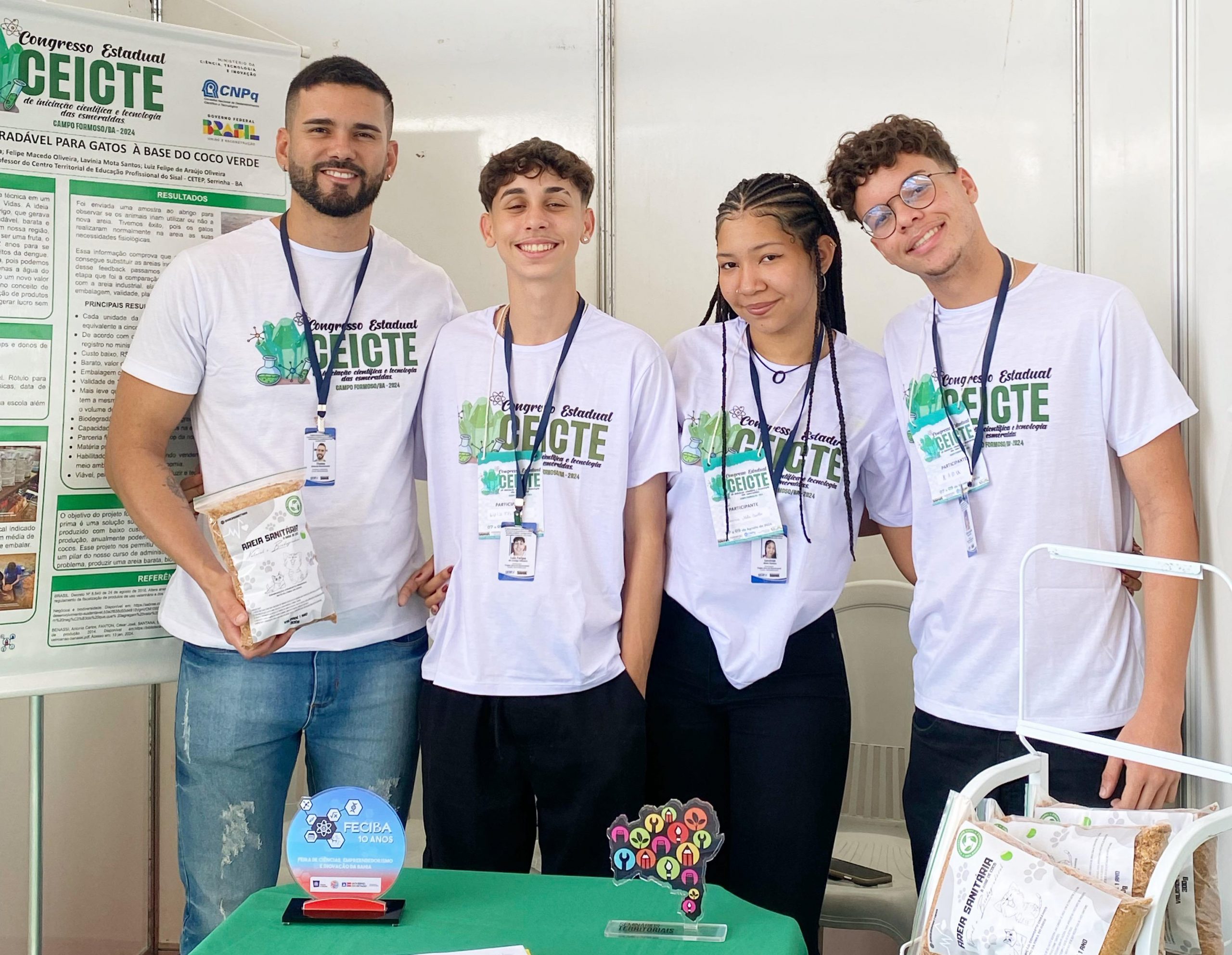 Com o projeto “Biocimento: precast de papel e fibra de coco para pavimentação intertravada de calçadas”, eles conquistaram credenciais para o Sudamericano de Ciências e Tecnologia – Ruta Científica, que acontecerá em 2025, no Paraguai. Já com o projeto “Bionegócio: uma alternativa de produção de economia sustentável na venda de areia sanitária biodegradável para gatos à base de coco verde”, eles ganharam credenciais para a Expogenius, que acontecerá em Sinaloa, no México, também no próximo ano.