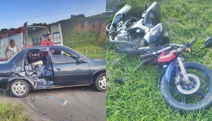 Moto e carro colidem na Praia do Dendê em S. A. de Jesus