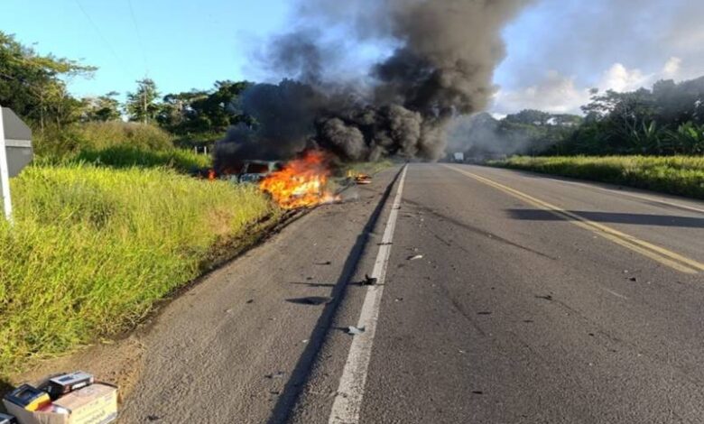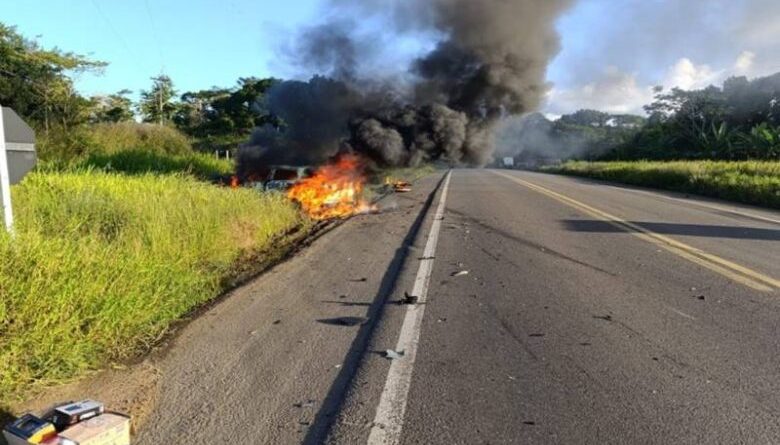 Motociclista morre em grave acidente no trevo da BR-101 com a BR-330; veículo pega fogo