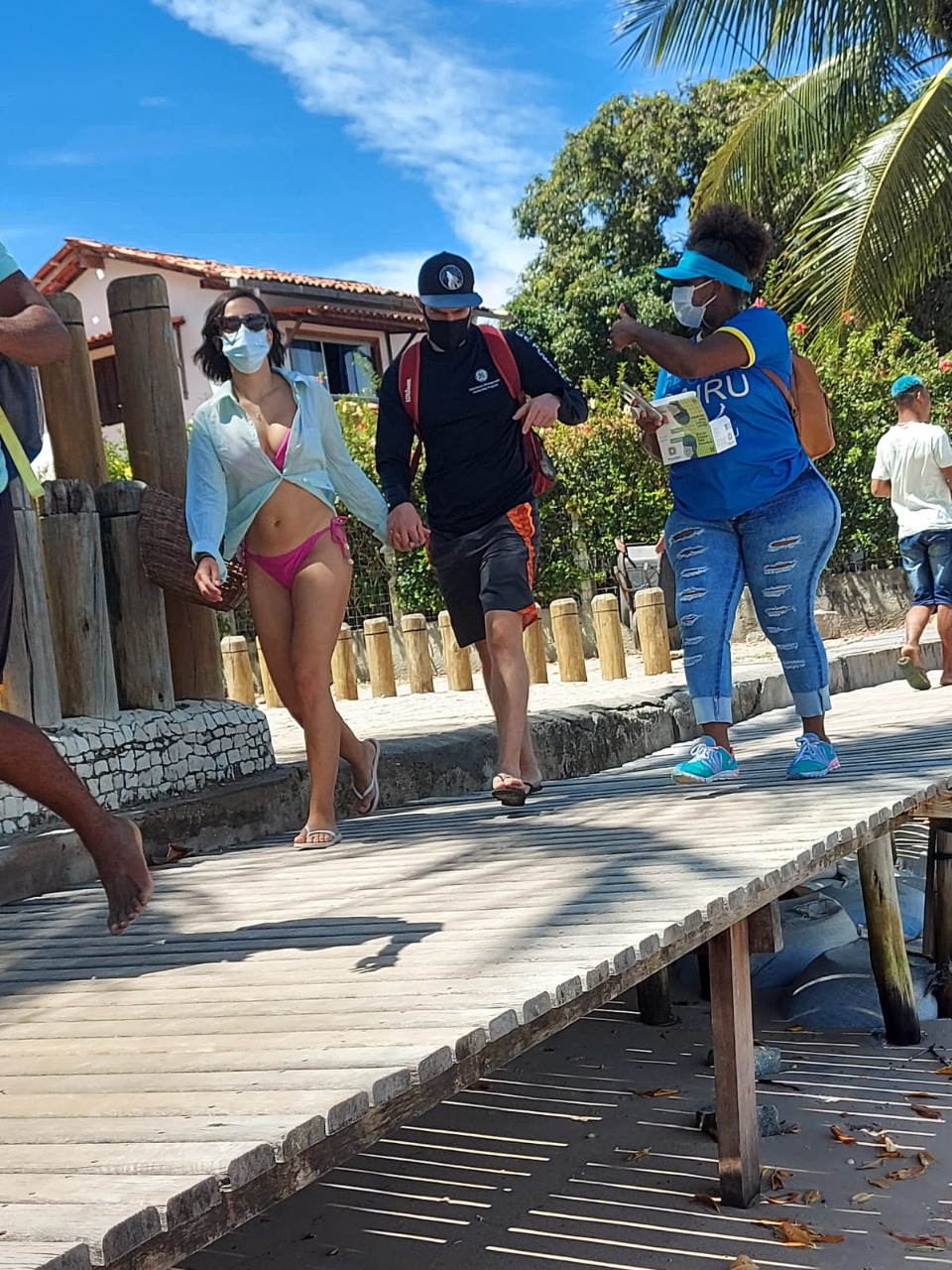 O Movimento Se Cuida Cairu, de combate ao coronavírus, que começou no último sábado (12) em Morro de São Paulo, segue com seu cronograma definido para o mês de fevereiro. A campanha de conscientização que é uma determinação do prefeito Hildécio Meireles e tem na coordenação a vice-prefeita e secretária de Saúde, Cíntia Rosemberg, conta com panfletos, adesivos e banners, além de distribuição de máscaras. As ações que estão sendo realizadas pela Prefeitura de Cairu, através da Secretaria de Saúde pretende impactar diretamente no comportamento de turistas e moradores das ilhas do Arquipélago. São cerca de 30 mil máscaras, recomendações da higienização com o uso de álcool a 70% e manter o distanciamento social. As atividades estão sendo realizadas pela equipe de Vigilância em Saúde com implantação de barreiras sanitárias nos acessos as ilhas e localidades, além de fiscalização aos estabelecimentos comerciais e abordagens às pessoas nas ruas. Visitas aos domicílios de todas as localidades também serão realizadas. De acordo com o cronograma do Movimento para o mês de fevereiro, as ações já aconteceram em Morro de São Paulo, Garapuá e Boipeba. Hoje (16) na Gamboa, dia 17 será em Boipeba, dia 19 na Sede, dia 20 em Canavieiras, Torrinhas e Tapuias. Dia 21 em São Sebastião, dia 24 no Galeão, dia 25 em Garapuá, dia 26 em Morro de São Paulo, dia 27 em Boipeba e dia 28 em Morro de São Paulo. Ascom – Prefeitura de Cairu
