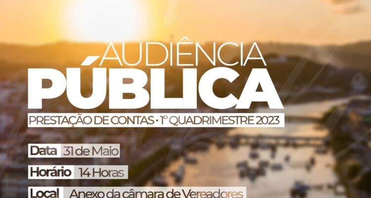 A Prefeitura de Valença realiza nesta quarta-feira (31), por volta da 14h, no anexo da Câmara de Vereadores, a Audiência Pública de prestação de contas do 1° Quadrimestre de 2023.