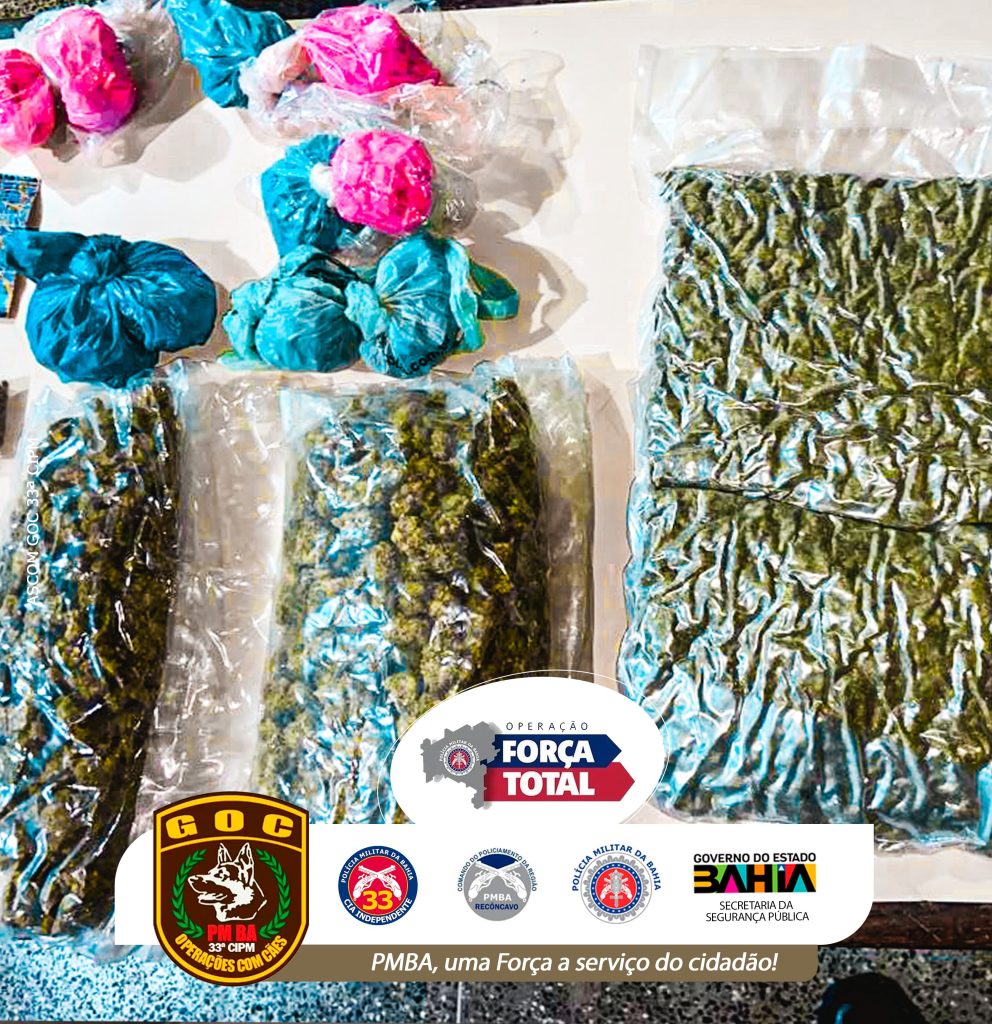 Policiais militares da 33ª CIPM, com o apoio da Guarnição do Canil Setorial apreenderam drogas no distrito de Jatinane, em Nilo Peçanha, na tarde de quarta-feira (27), durante policiamento da Operação Força Total nas proximidades de um festival de música que acontece na cidade, avistaram um veículo Fiat Uno que, ao perceber a presença dos militares, realizou uma manobra brusca e tentou evadir.