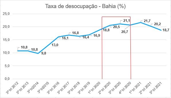 Foi a menor taxa de desocupação para o estado desde o início da pandemia da COVID-19, no 1º trimestre de 2020. Entretanto ainda estava significativamente acima da registrada no 3º trimestre de 2019 (16,9%).