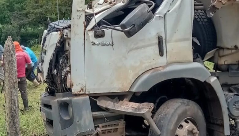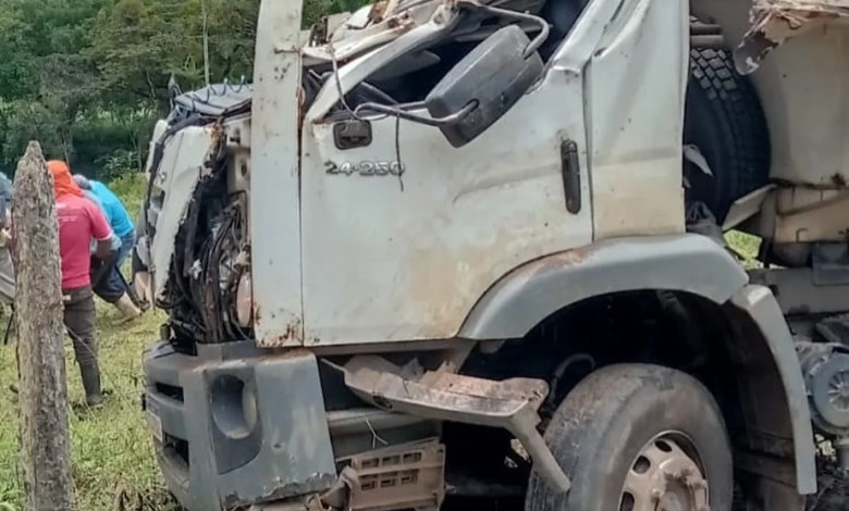 A cabine do veículo ficou completamente destruída, Imagens feitas no local do acidente mostram a cabine da caçamba destruída, e a vítima com um ferimento na cabeça.