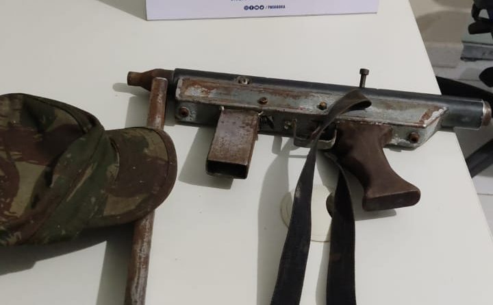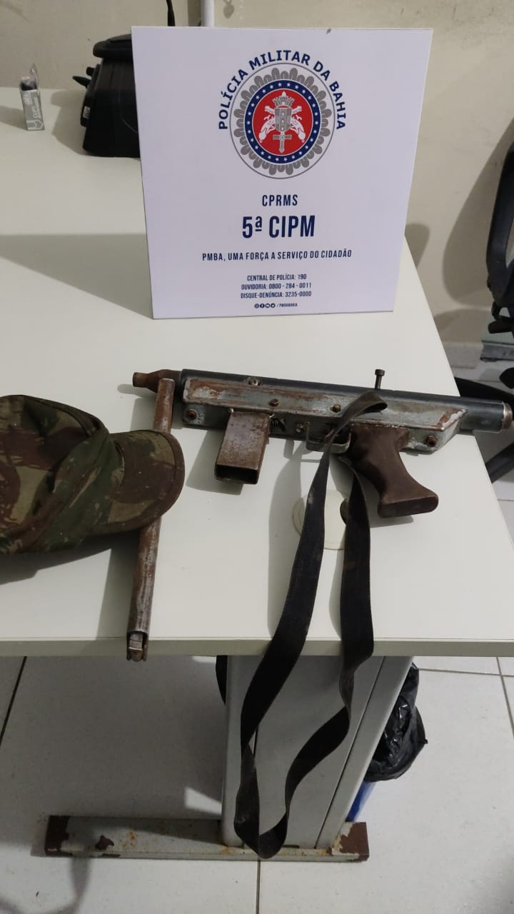 Equipes do Pelotão de Emprego Tático Operacional (PETO) 5ª CIPM apreenderam uma submetralhadora e um carregador de calibre 9mm, uma carteira cheia de documentos e uma mochila feminina no bairro Gamboa, município de Vera Cruz, na noite de sexta-feira (19).