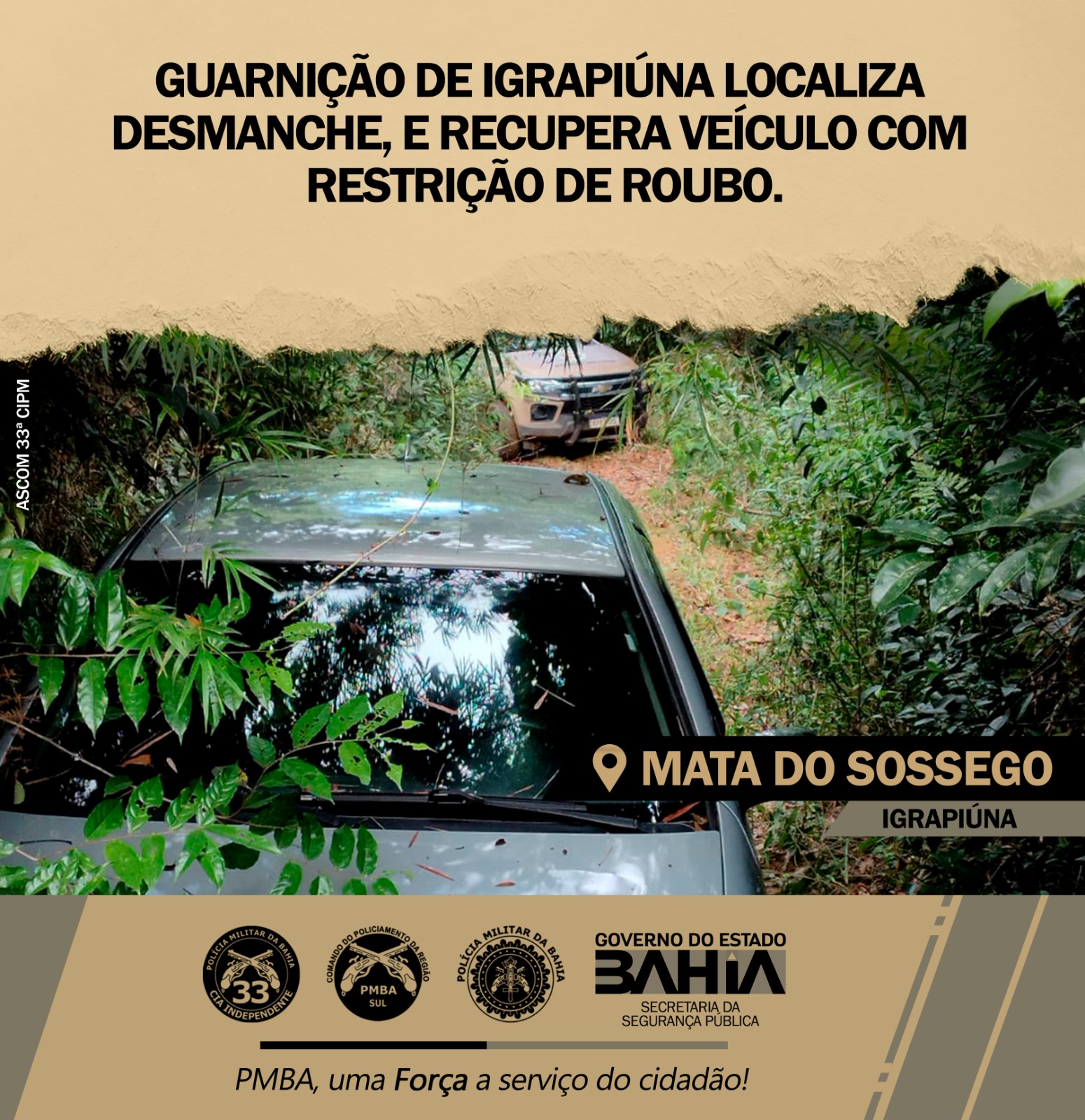 Na ação, os policiais recuperaram um veículo VW/Gol de cor prata em condições de desmonte, que havia sido roubado na BR 101, sentido Banco Central, na cidade de Uruçuca.
