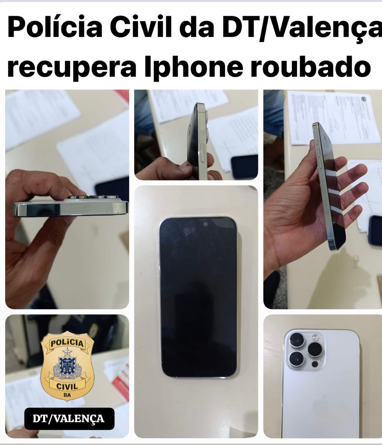 Polícia Civil da DT/ Valença recupera Iphone 14 Pro Max roubado