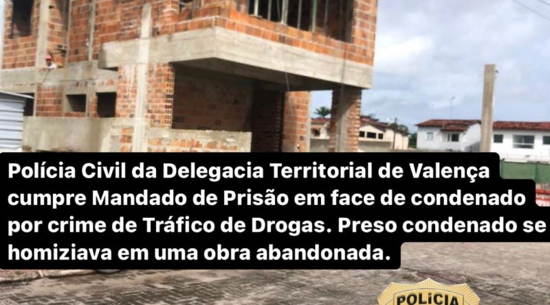 Polícia Civil DT/Valença cumpre mandado de prisão por Tráfico de Drogas