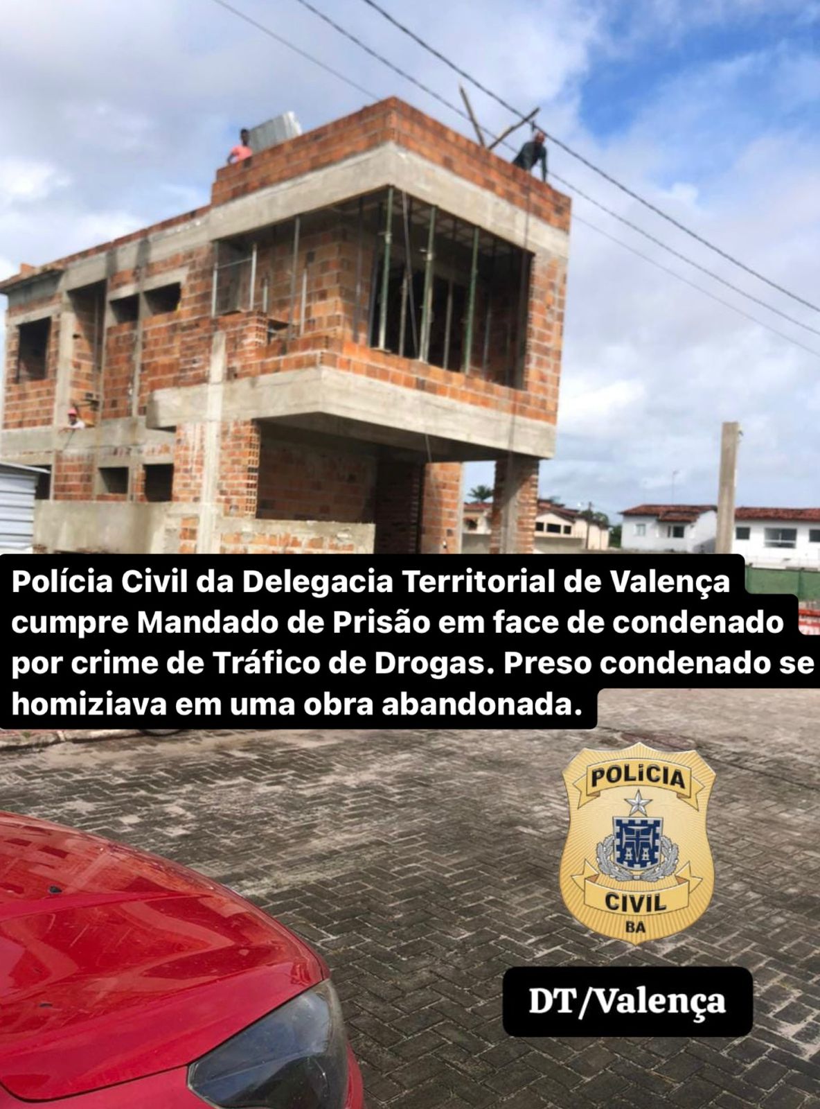 A prisão ocorreu em um prédio abandonado, onde o indivíduo estava se homiziando, localizado na Rua D, Bairro Novo Horizonte, Valença-BA.