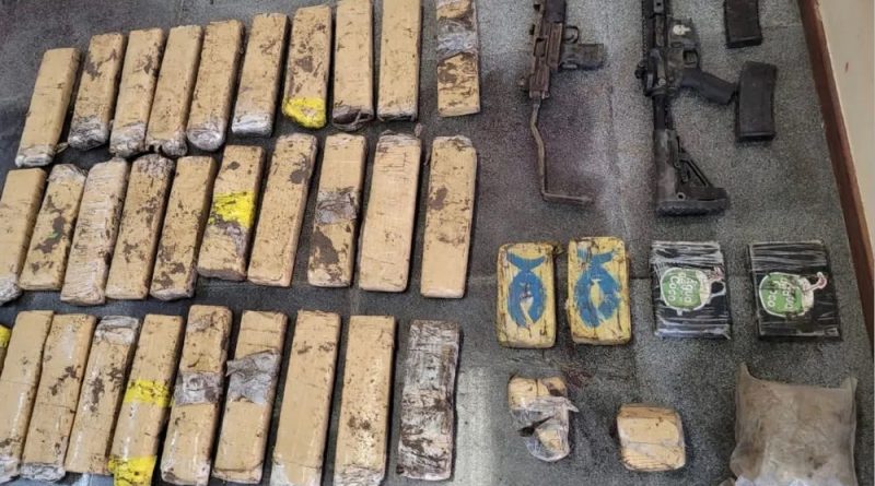 Foram também encontrados 30 tabletes de maconha, dois carregadores de fuzil, duas porções de maconha e quatro de cocaína .