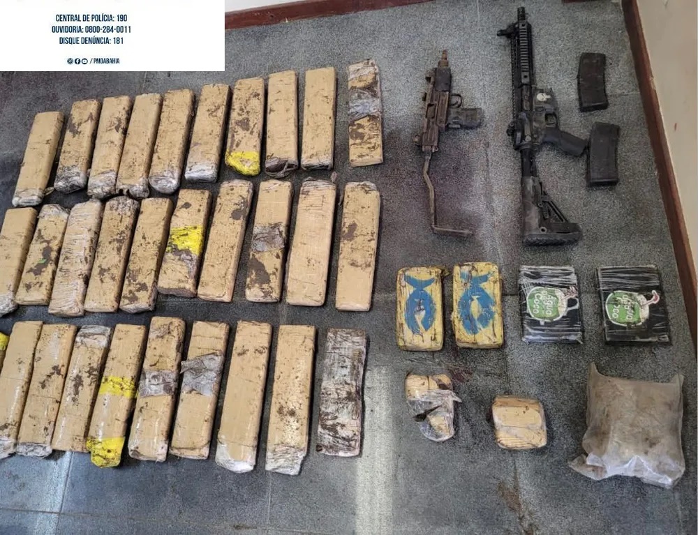 Polícia encontra drogas e armas enterradas em terreno baldio de Feira de Santana