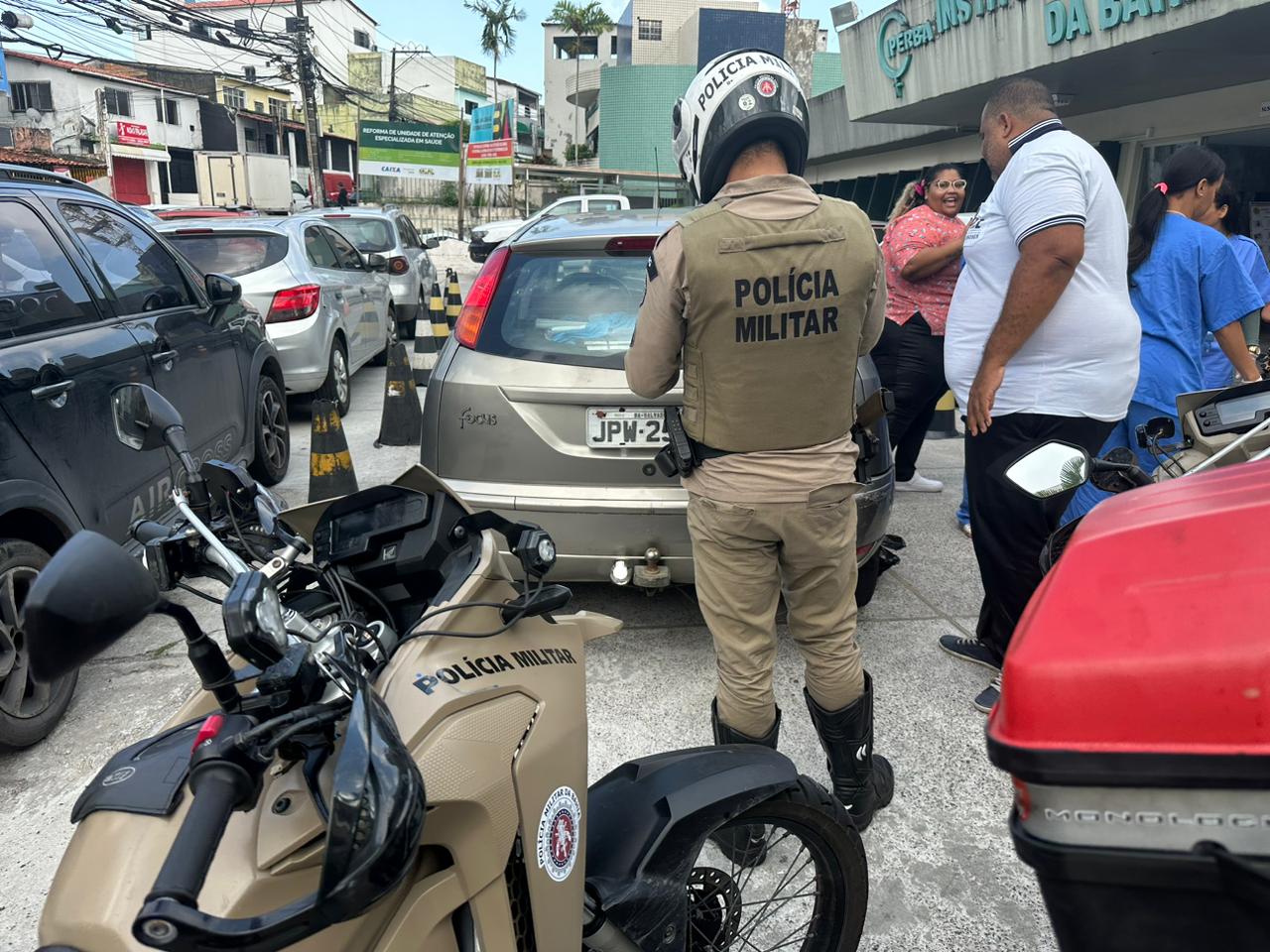 Policiais militares conduzem em segurança até a maternidade mulher em trabalho de parto presa no trânsito de Salvador