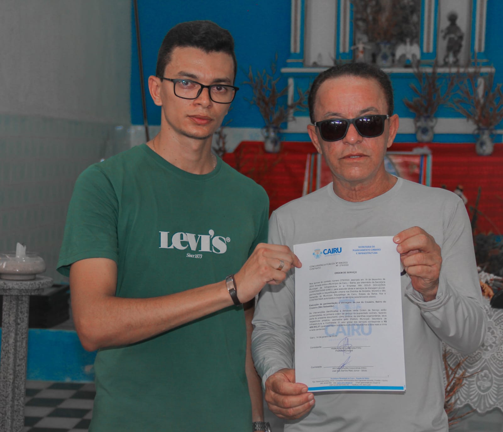 O prefeito de Cairu, Hildécio Meireles, assinou neste domingo (15) a ordem de serviço para o início das obras de drenagem e pavimentação da rua do Alto do Cruzeiro, em Cova da Onça. O importante ato atende uma antiga reivindicação dos moradores do belo lugar.
