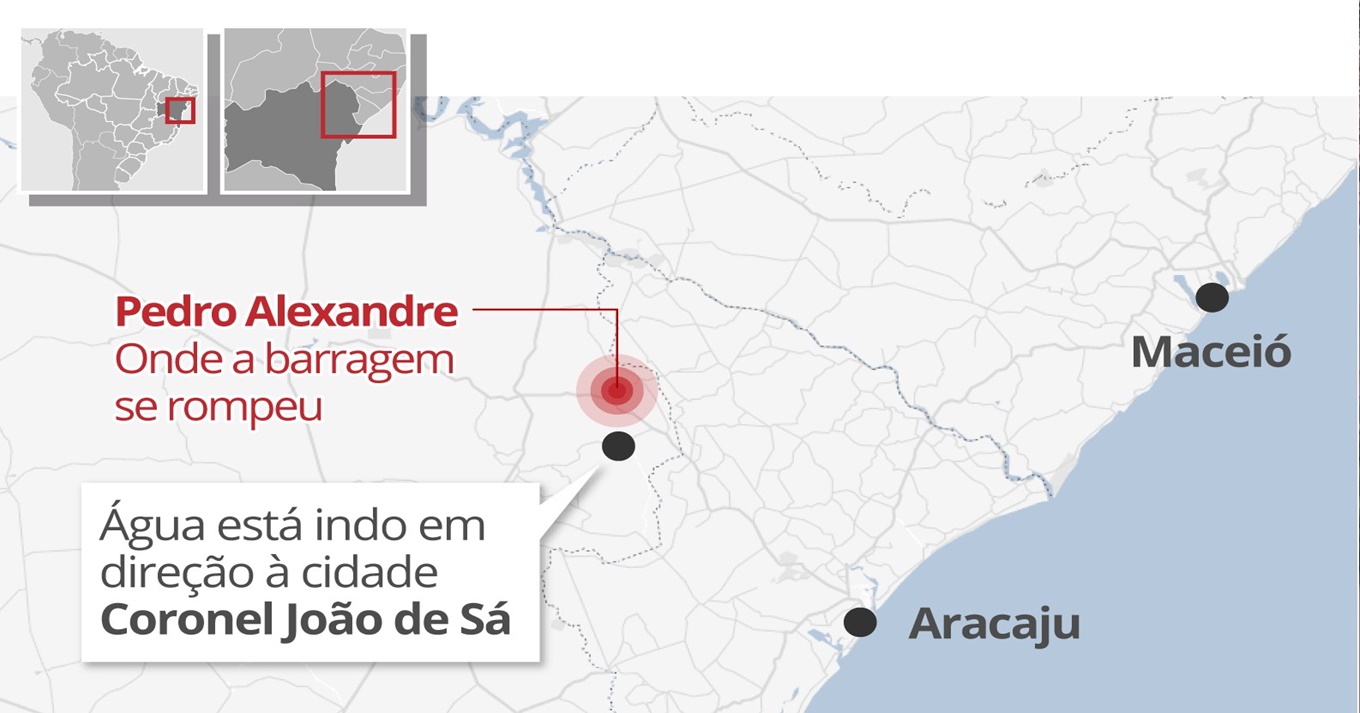 A prefeitura da cidade de Pedro Alexandre, que fica a cerca de 435 km de Salvador, decretou situação de emergência e calamidade pública nesta quinta-feira (11), após o rompimento de uma barragem no povoado de Quati.