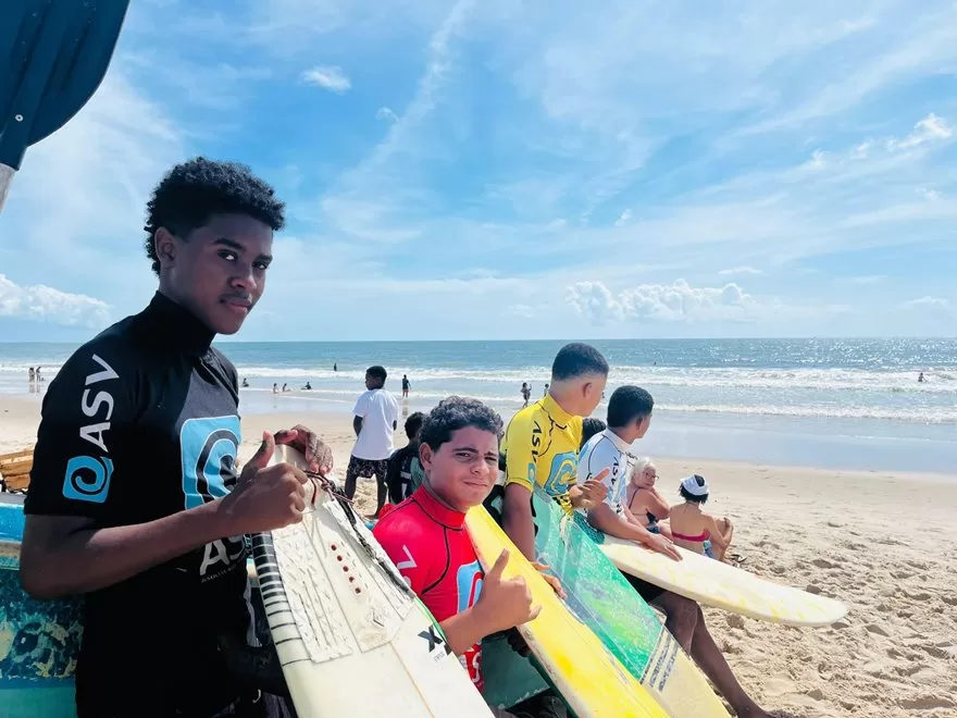 Participaram adolescentes alunos da Escola de Surf Alma Salgada, que competiram nas categorias Feminino Base e Masculino Base, vivenciando pela primeira vez a dinâmica de uma competição estruturada.