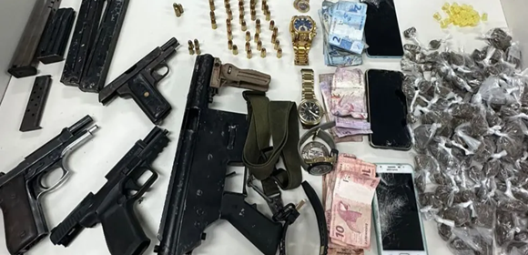 Além das armas, com eles foram apreendidos munições, porções de maconha e crack, celulares e R$ 151. (G1)