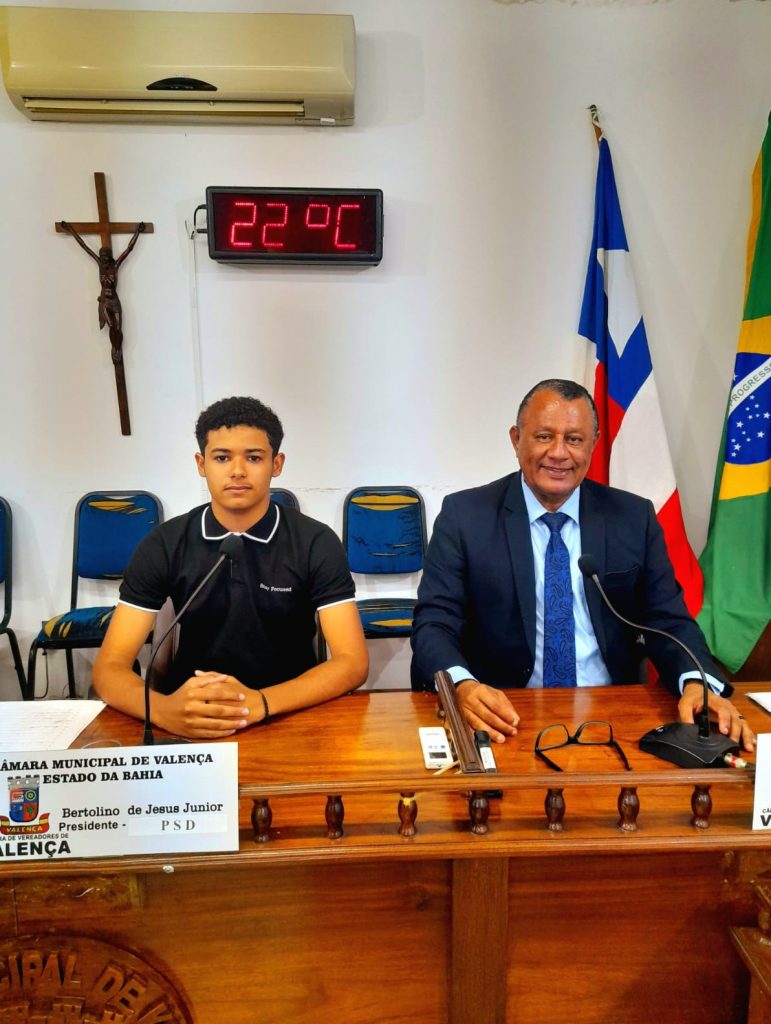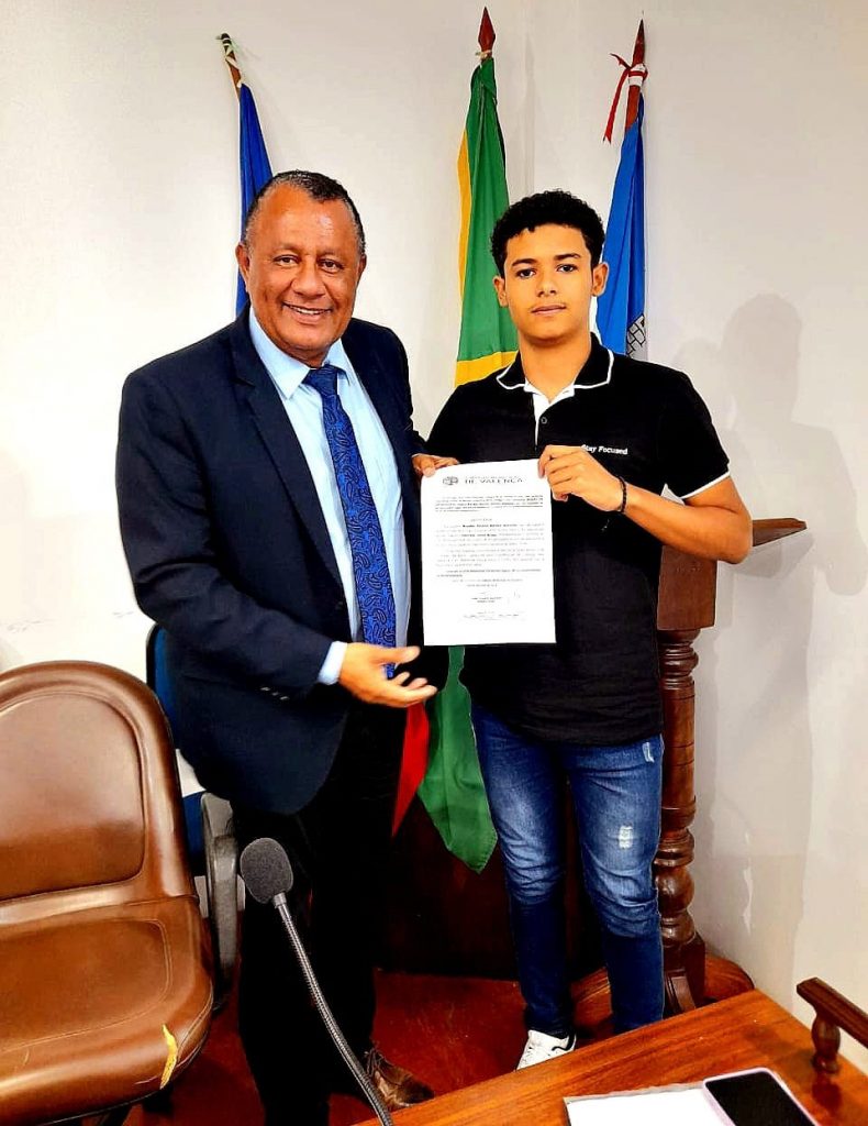 Na Sessão desta terça-feira dia (09), o jovem Raydan recebeu uma Moção de Aplausos pelo fato inusitado de ser eleito Deputado jovem da Bahia pelo território nte06 e representará a Valença na Alba Assembleia Legislativa do Estado uma moção do vereador do partido PC do B Valdir Silvestre dos Santos.