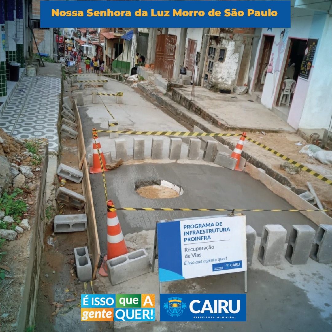 As ações de infraestrutura no Arquipélago de Cairu seguem a todo vapor. As obras do Programa PROINFRA, com a recuperação de ruas em todo município seguem o cronograma e o planejamento do prefeito Hildécio Meireles, com a recuperação da pavimentação do bairro Nossa Senhora da Luz, limpeza das redes de drenagem e manutenção das passarelas em Morro de São Paulo. Em Garapua, com a manutenção da drenagem e pavimentação da Rua da Baiuca. Na Gamboa as ações estão concentradas no bairro do Toque com a substituição das redes de esgoto e manutenção da drenagem. Na Sede do município foram abertas frentes de trabalho na Rua Nilo Peçanha, Rua Guarani, no acesso ao Porto da Cajazeiras e na Avenida Beira Mar. Em Boipeba já estão programadas a manutenção da passarela da Orla, recuperação de pontes, drenagem e pavimentação. Ações do programa estão previstas para ser iniciadas também em São Sebastião e no Galeão.