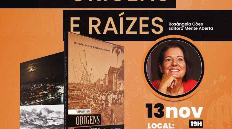 A escritora e professora Rosângela Góes de Queiroz Figueiredo lança, no próximo dia 13 de novembro, às 19h, no Teatro Municipal de Valença, o livro “Valença da Bahia: Origens e Raízes”, publicado pela Editora Mente Aberta. O evento integra a programação oficial do aniversário de 176 anos de Valença e conta com o apoio da Prefeitura Municipal, por meio das Secretarias de Cultura, Educação, Políticas para Mulheres e Reparação, Comunicação e Promoção Social.