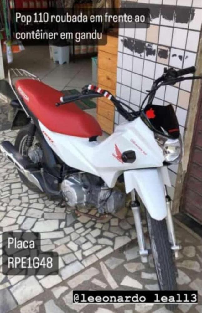 O caso mais recente foi de uma POP 110 em frente ao contêiner. Placa: RPE1G48.