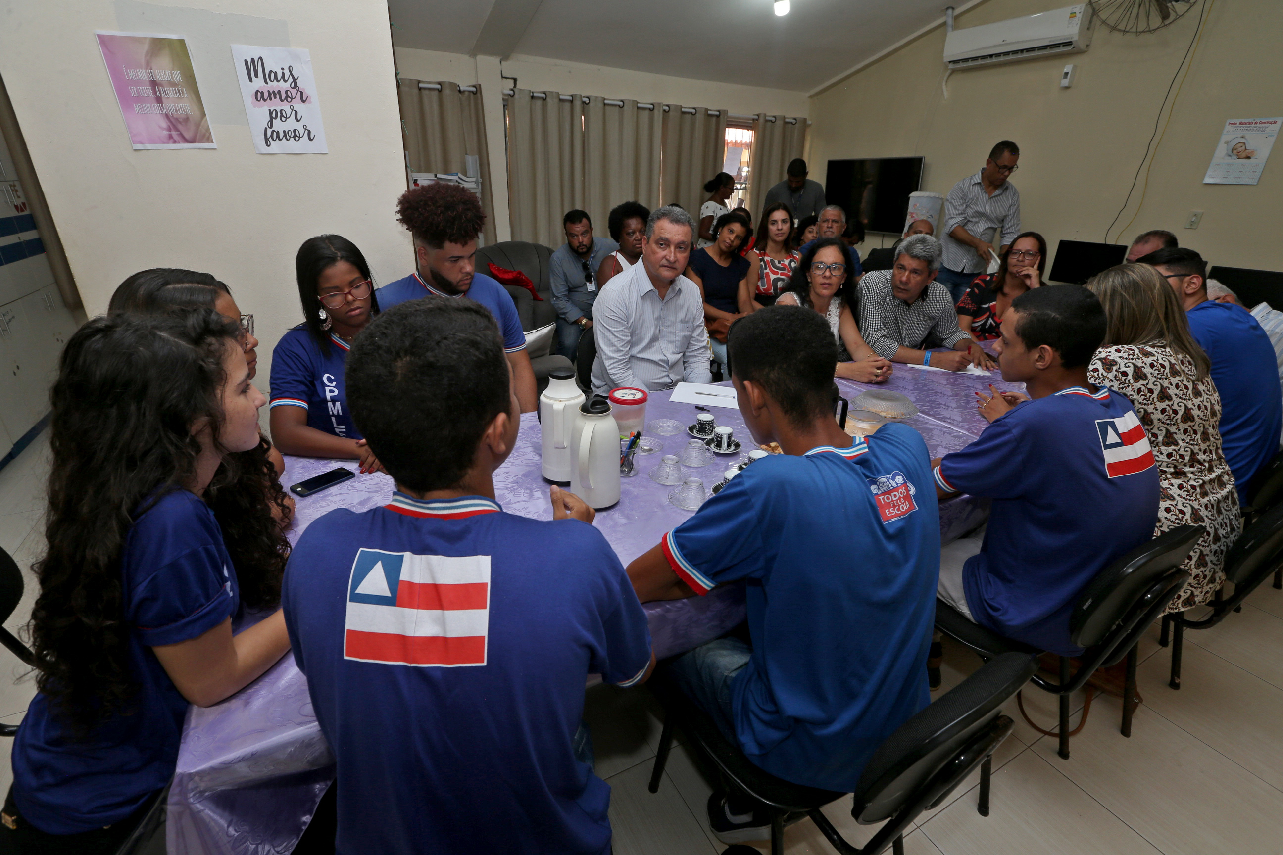 O secretário da Educação, Jerônimo Rodrigues, destacou que a visita às escolas leva a mensagem de que o governador acredita na instituição. “Isso é uma escuta. Há as reivindicações da parte pedagógica, de infraestrutura e das questões salariais. Então, a reunião proporciona resolutividade para essas questões”.
