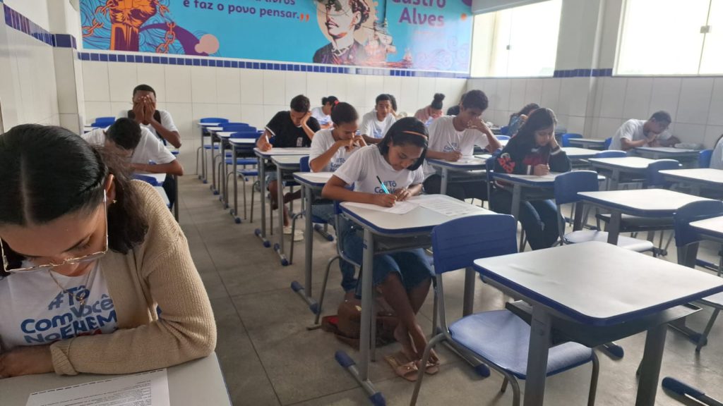 A Secretaria da Educação do Estado (SEC), através do plano de ação “Tô com você no Enem”, vem apoiando os estudantes da rede estadual que farão as provas do Exame Nacional do Ensino Médio (Enem) 2024. O trabalho teve início com o incentivo à solicitação de isenção para as inscrições e segue até a realização das provas, em 3 e 10 de novembro, inclusive, com a oferta de transporte para o deslocamento nesses dias do exame. Ainda dentro das atividades desenvolvidas nas unidades escolares, destaque para os aulões de revisão do conteúdo relacionado ao Enem.