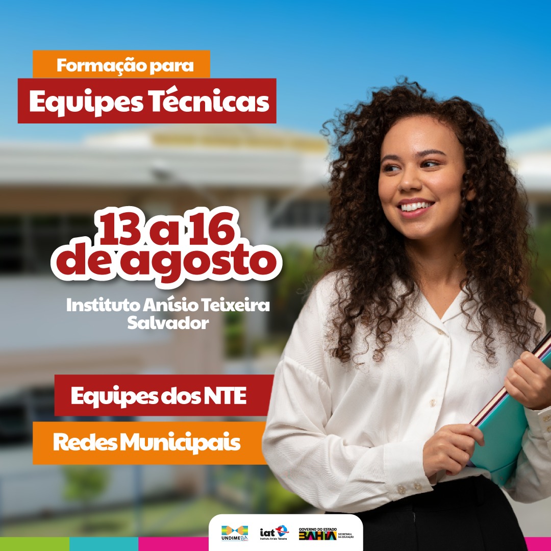 A Secretaria da Educação do Estado da Bahia, por meio do Instituto Anísio Teixeira, realiza, entre os dias 13 e 16 de agosto, no IAT, o segundo encontro presencial da formação continuada de equipes técnicas das secretarias municipais de educação e dos Núcleos Territoriais de Educação da rede pública estadual. Participarão da atividade técnicos que atuam diretamente no atendimento a estudantes dos anos finais do ensino fundamental. A formação, que acontece em 03 etapas anuais (2024-2026), terá carga horária de 104h (por etapa) e será realizada em formato híbrido.