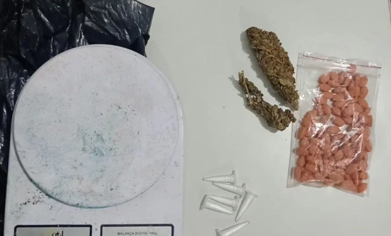 Durante a realização de rondas preventivas na localidade citada, foi possível identificar um indivíduo em atitude suspeita, e, após a abordagem e busca pessoal, foi encontrado com ele substâncias que aparentavam ser entorpecentes.
