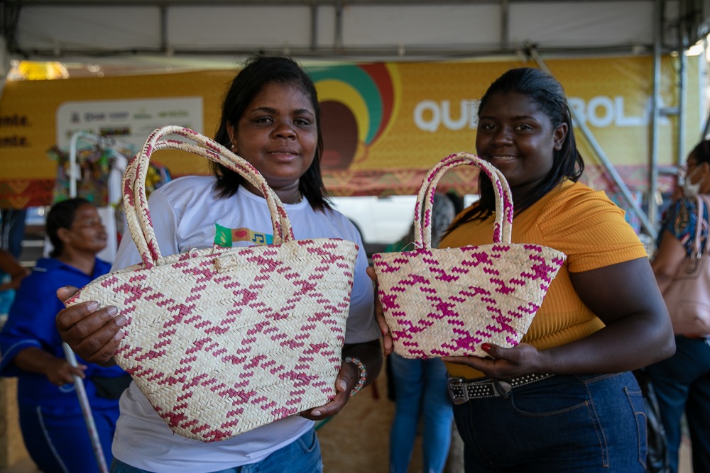 A Tenda Quilombola, por sua vez, destaca o trabalho artesanal e sustentável de comunidades quilombolas baianas. Entre os produtos estão biojoias, peças feitas com coco de piaçava, sementes e palhas, além de itens desenvolvidos a partir do extrativismo sustentável.