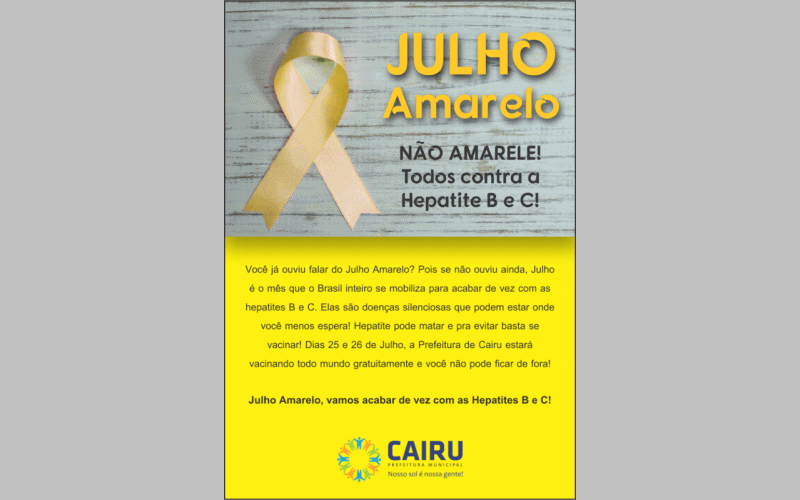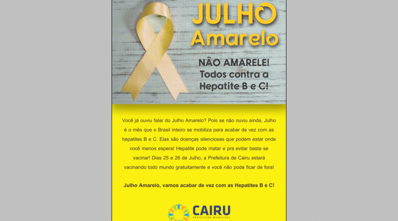 Saúde Vacinação contra hepatite inicia na quinta-feira (25) em Cairu 23 de julho de 2019 Atualiza Bahia 0 Comentário