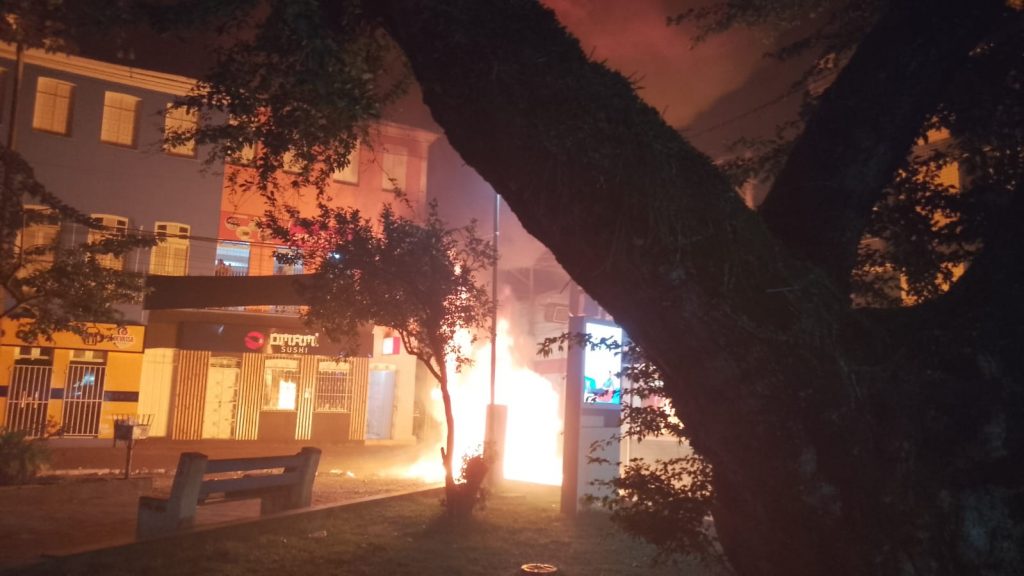 Após o assalto ao banco Bradesco, os assaltantes encapuzados, evadiram do local, disparando vários tiros para o alto, nas imediações da Praça da República e ao passarem na ponte Inocêncio Galvão de Queiroz incendiaram um veículo na intenção de dificultar o acesso das viaturas na ação policial.