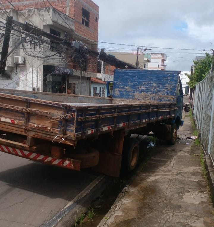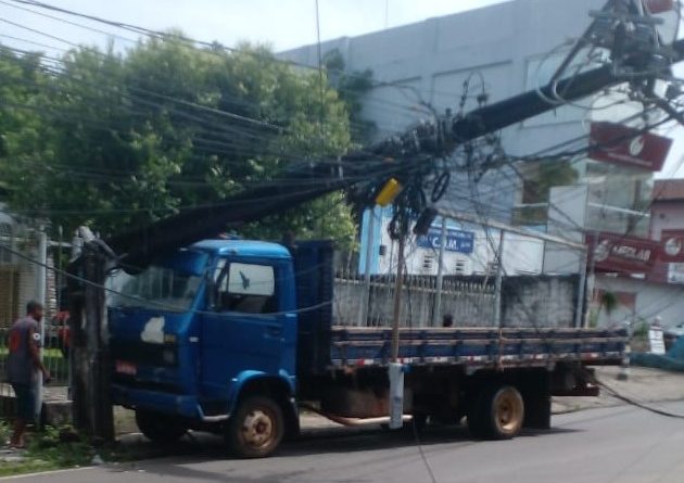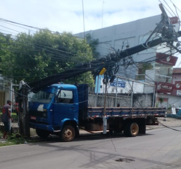 Valença: Caminhão atinge poste na rua Quintino Bocaiúva em frente a CEPLAC