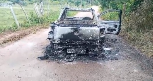 Veiculo tomado de assalto no Orobó é encontrado incendiado na BA 001, após o trevo do Guaibim