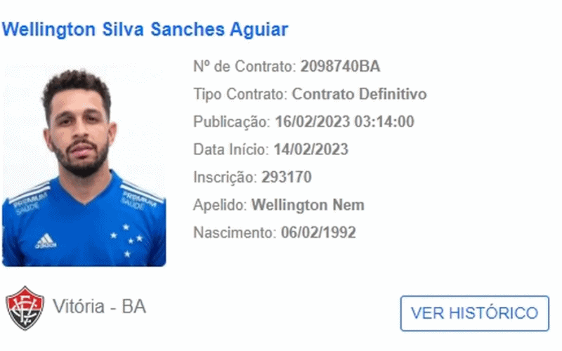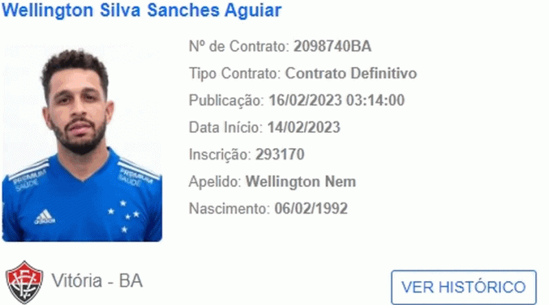 O Vitória acertou com mais um jogador para a disputa da temporada 2023. Trata-se de Wellington Nem, atacante de 31 anos que estava sem clube e vinha mantendo a forma no Barradão desde janeiro. O nome do atleta foi publicado no Boletim Informativo Diário (BID) da CBF, na tarde desta quinta-feira.