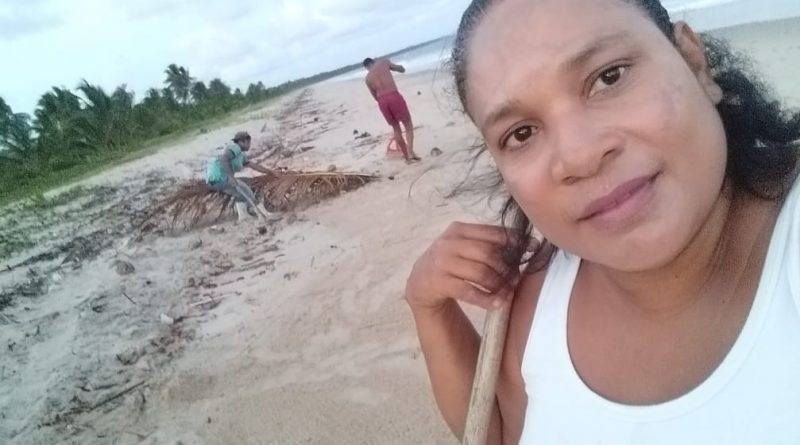 Voluntários e equipes municipais limpam Praia de Pratigi após ser atingida por manchas de óleo