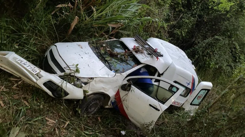 O motorista perdeu o controle da ambulância, após desviar de um outro veículo que vinha na contra-mão fazendo uma ultrapassagem proibida e acabou caindo na ribanceira.