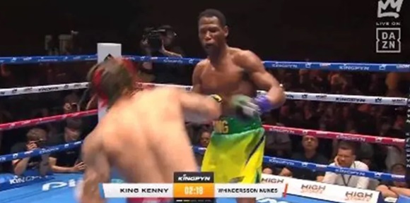 O momento contou com a euforia do público. Mas, logo no início, Nunes sofreu com a diferença de envergadura do rival e não conseguiu aplicar golpes que o machucassem. Com essa vantagem, Kenny dominou o torneio em todos rounds.