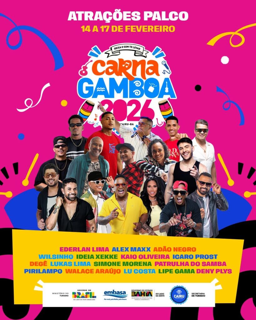 CarnaGamboa 2026 conta com 30 atrações nos seis dias de festa