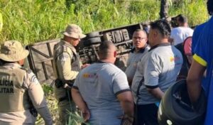 Topic com 10 ocupantes tomba na BA-001 após perder o controle da direção