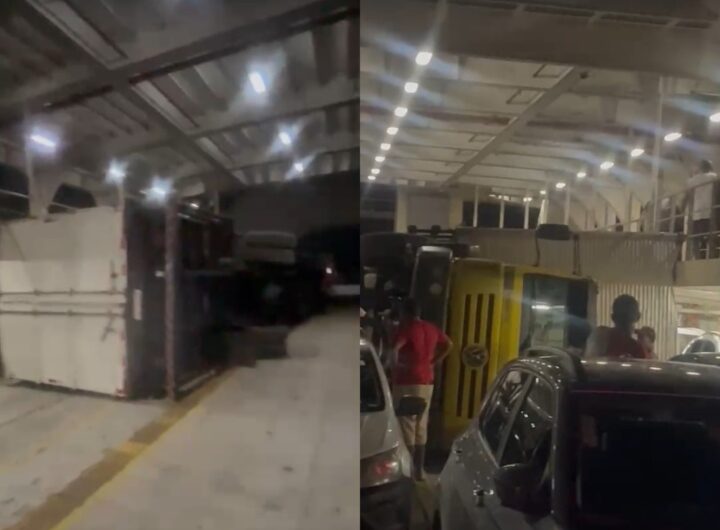 Imagem: reprodução/vídeoUm caminhão tombou dentro da embarcação Ferry-boat Dorival Caymmi durante a travessia entre Salvador e Ilha...