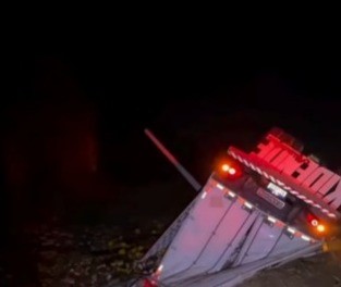 Uma carreta carregada de dendê e leite de coco tombou no início da noite desta segunda-feira (23),...