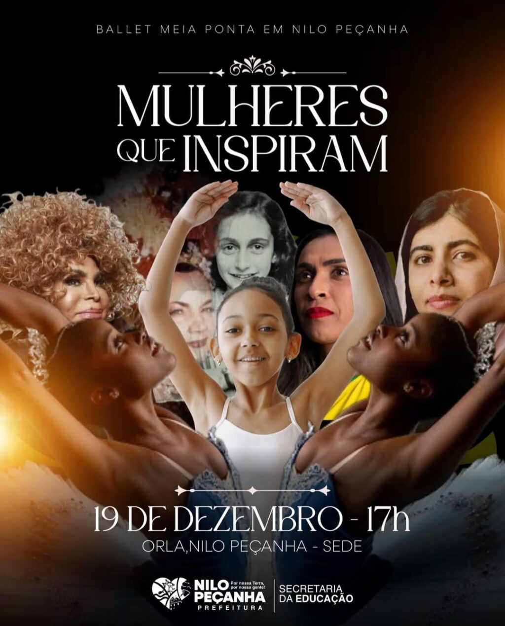 A Orla Fluvial de Nilo Peçanha será palco, nesta sexta-feira (19), de um momento especial de arte, emoção e valorização cultural, com a apresentação do espetáculo de ballet “Mulheres que Inspiram”, promovido pela Prefeitura de Nilo Peçanha, por meio da Secretaria Municipal da Educação.