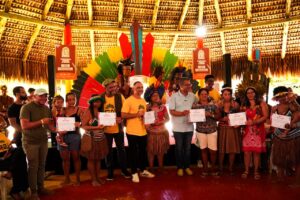 Samehy Pataxó, Presidente da Associação de Mulheres Pataxó e Tupinambá do Extremo Sul, expressou a alegria e o reconhecimento das comunidades pela entrega das carteiras de artesão: