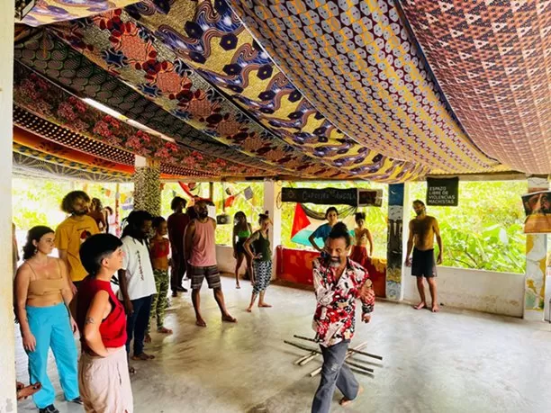 Durante seis dias de programação, o evento reúne participantes do Brasil e de países como França, Austrália e China, promovendo vivências e oficinas de Capoeira Angola, agrofloresta, plantas medicinais, artesanato, bioconstrução e mesas de troca de experiências, integrando cultura, espiritualidade e sustentabilidade.
