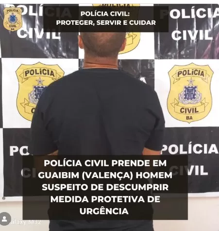A Polícia Civil da Bahia, por meio do Serviço de Investigação da Coordenadoria da 5ª COORPIN de Valença, realizou a prisão de um homem que, supostamente, descumpriu Medida Protetiva de Urgência expedida pela Justiça.