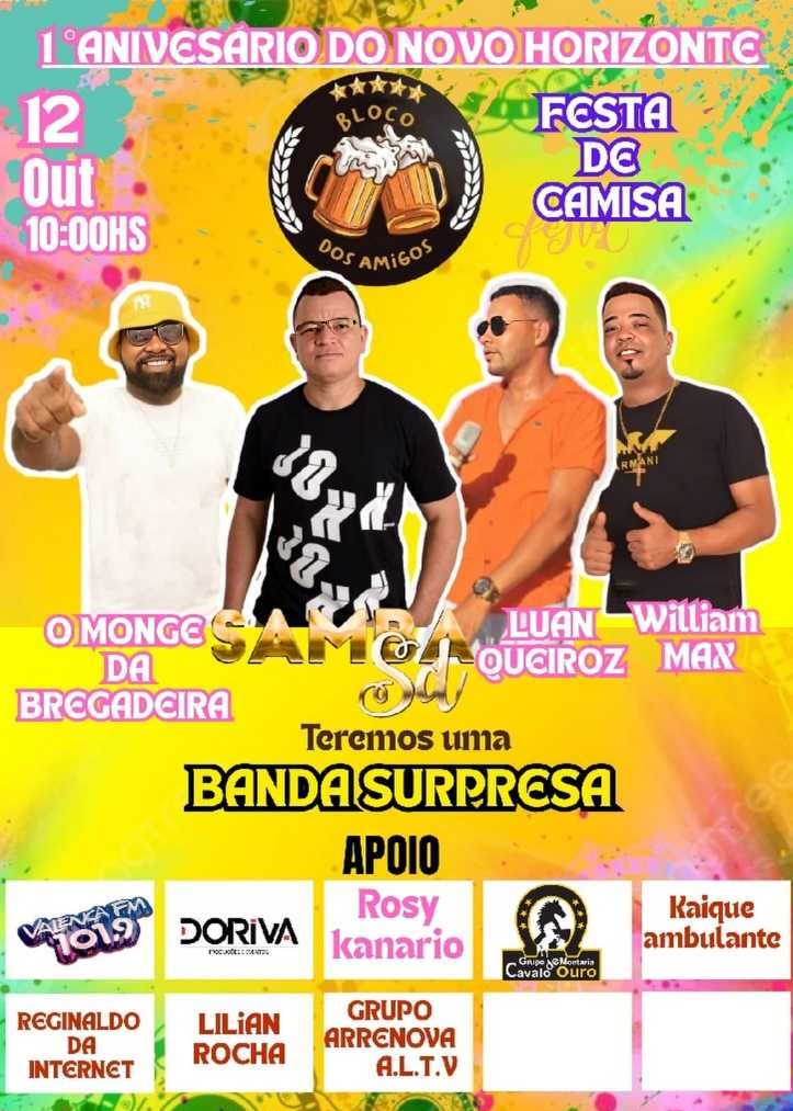 Entre as atrações confirmadas estão: Samba SD, O Monge da Bregadeira, Luan Queiroz e William Max.