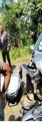A colisão envolveu um carro de passeio e quatro motocicletas, deixando seis pessoas feridas.