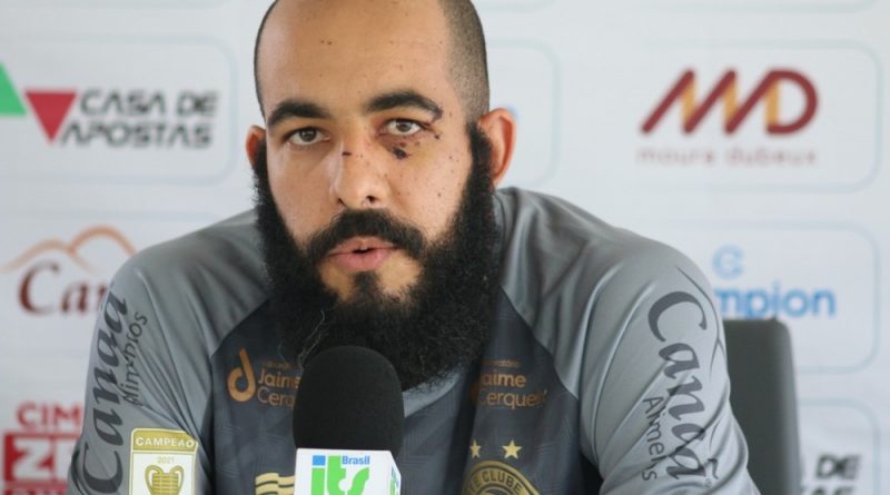 Danilo Fernandes concede entrevista coletiva após ataque a ônibus do Bahia — Foto: Felipe Oliveira/EC Bahia