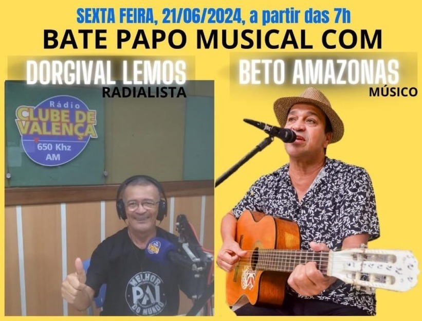 Bate papo musical com Dorgival Lemos na Rádio Clube de Valença, terá como convidado o músico e cantor Beto Amazonas
