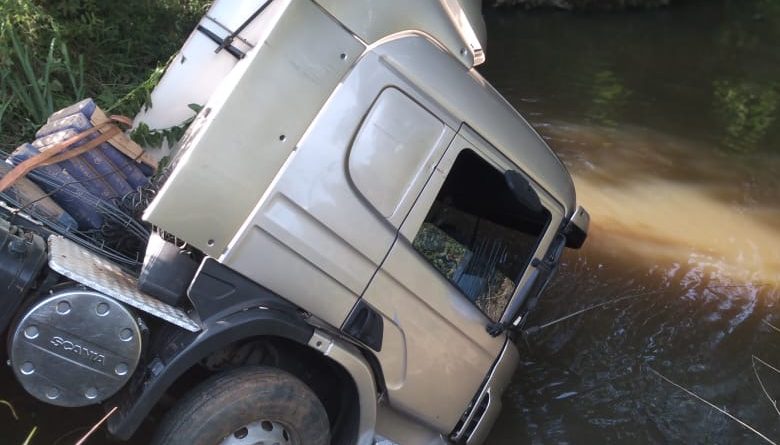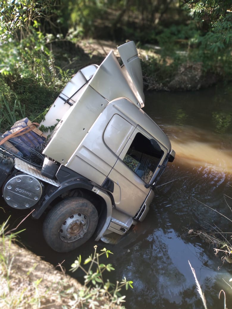 Uma carreta despencou da ponte do Benfica neste sábado (3), após o motorista perder o controle do veículo, que era do modelo Scania e não estava carregado no momento do acidente.